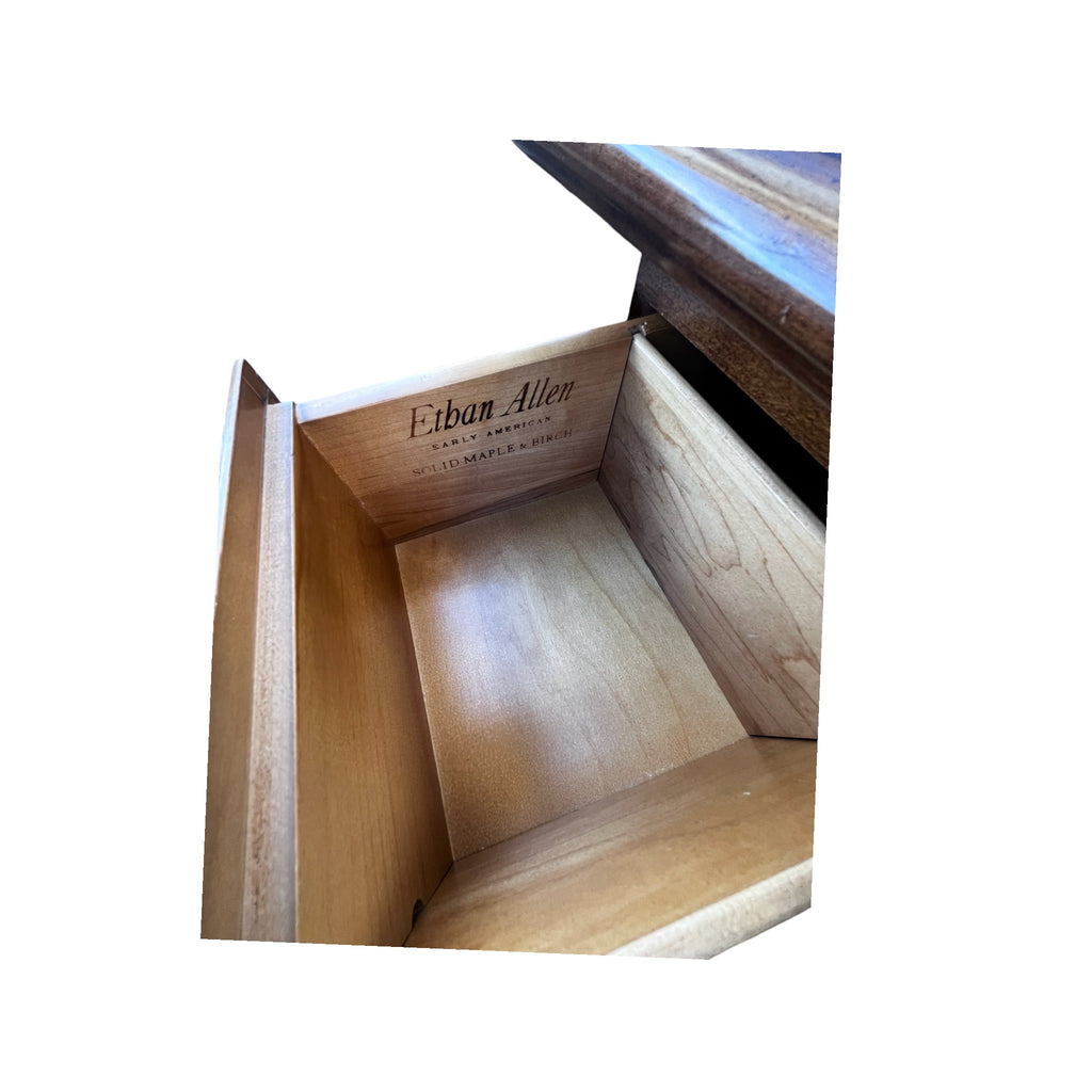 The ETHAN ALLEN Classic Manor 66" Nine Drawer Double Dresser is a traditional style dresser made of wood with a brass handle finish. This rectangular dresser features 9 drawers for storage and is 66 inches wide, making it suitable for adults' bedroom. With a brown color and easy care instructions, this dresser from the Classic Manor Collection of Ethan Allen is a timeless piece that adds elegance to any bedroom decor