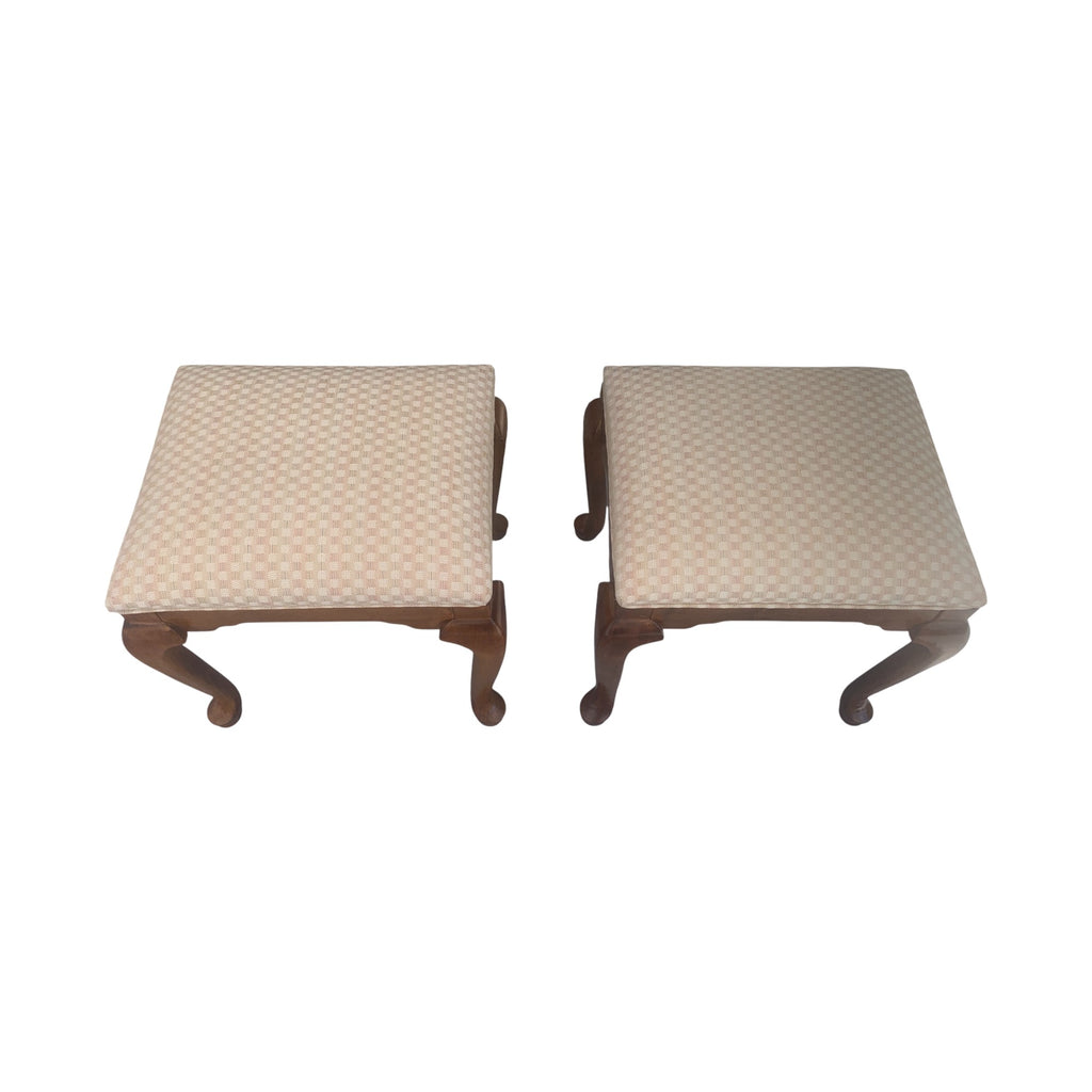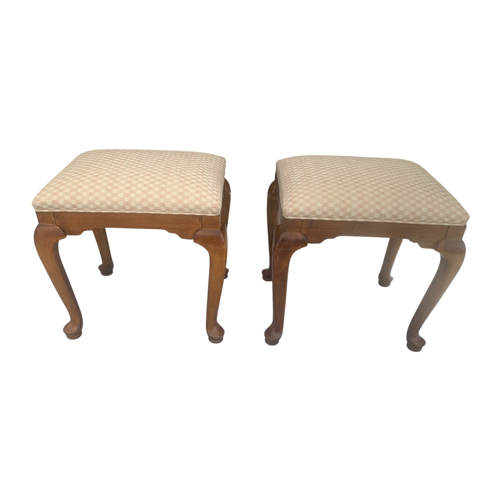 Ethan Allen Queen Anne Style Maple Benches or Stools - A Pair