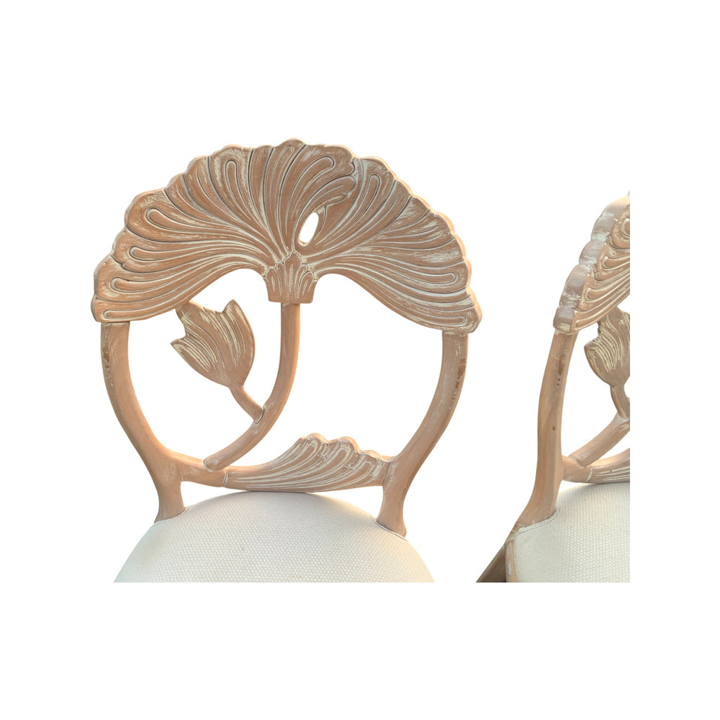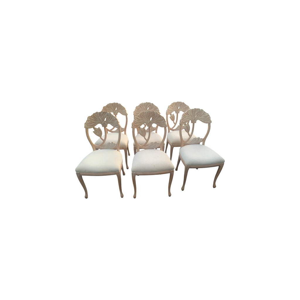 Lime Wash Lotus Floral Carved Dining set In the Manner of Phyllis Morris