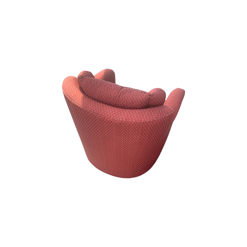The Milo Baughman Style Red swivel tilt chairs with channel back by Robb & Stucky are a set of two mid-century modern accent chairs designed for adults. These indoor chairs stand at 31 inches tall with a length of 30 inches and a width of 29.5 inches, making them a stylish and comfortable addition to any home décor. The vibrant red color adds a pop of personality to the room, while the swivel tilt feature and channel back design provide functionality and support for long periods of sitting.