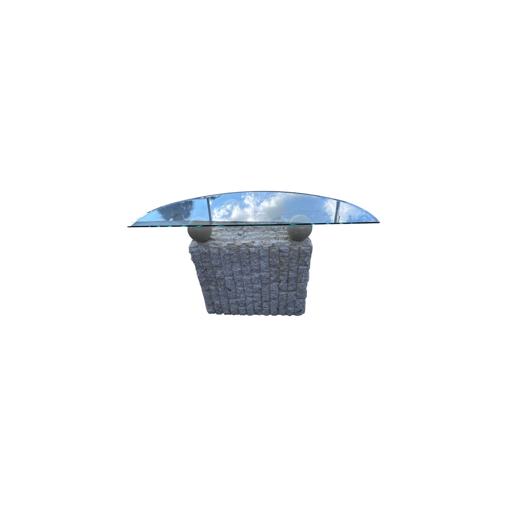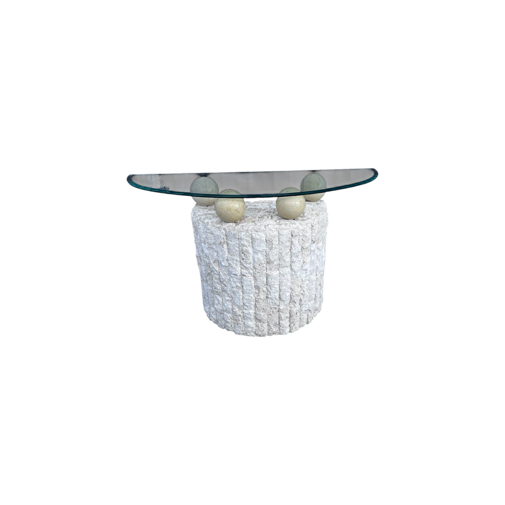 Postmodern Tessellated Stone Demi Lune Glass Top Console Table