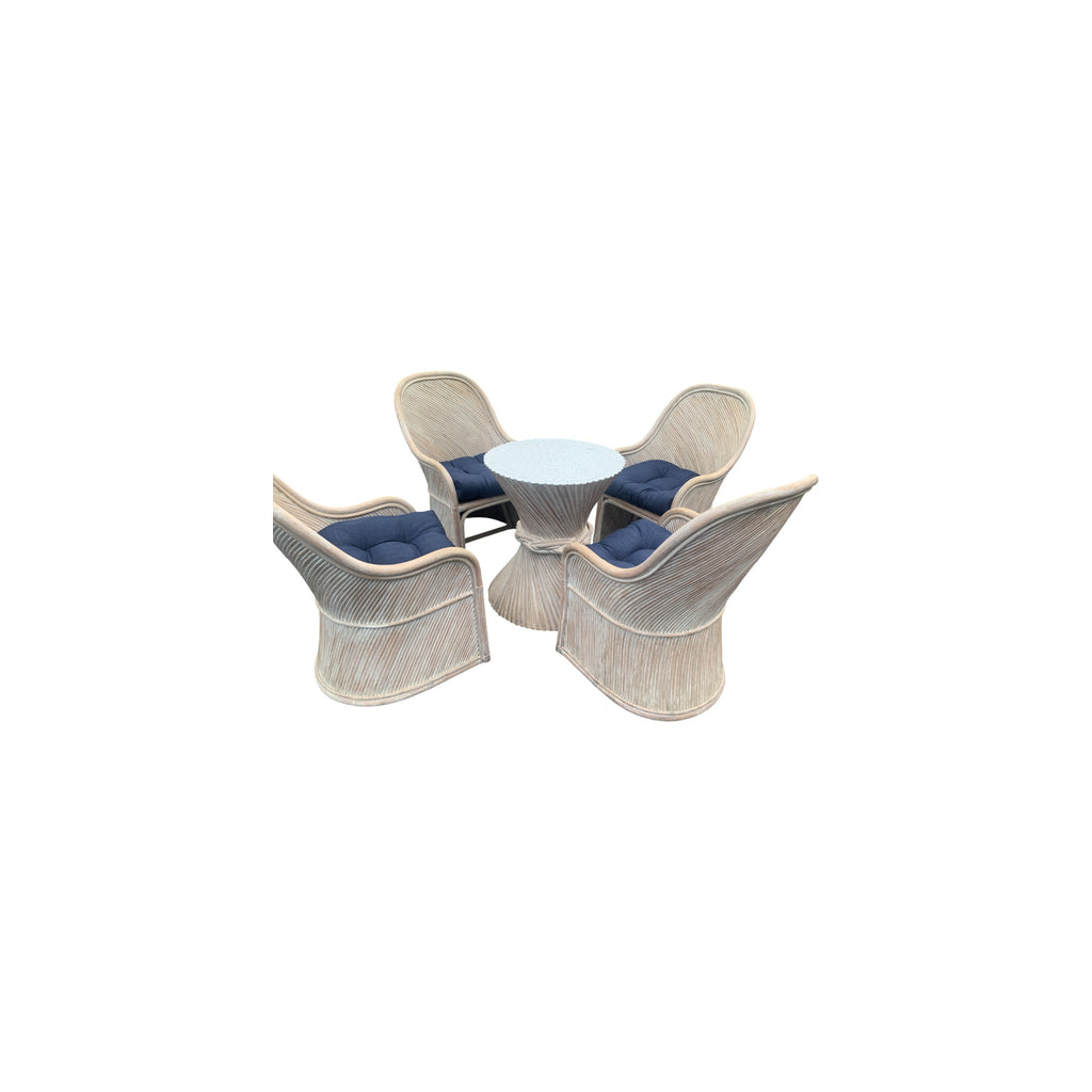 This listing is for a Sculptural Split Reed Dining Set Chairs Rattan Barrel Crespi Style. Made by Henry Link
