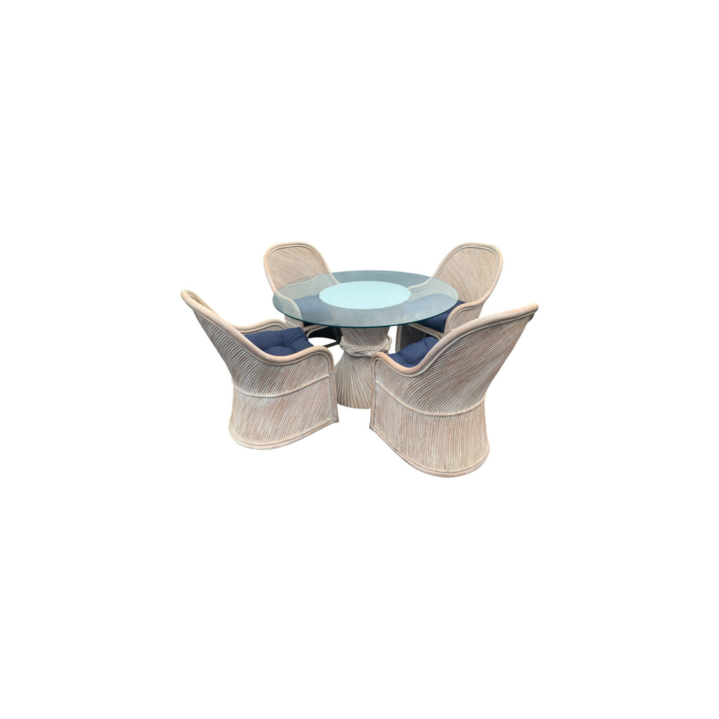 Henry Link Sculptural Split Reed Dining Set Chairs Rattan Barrel Crespi Style Glass 47.5"