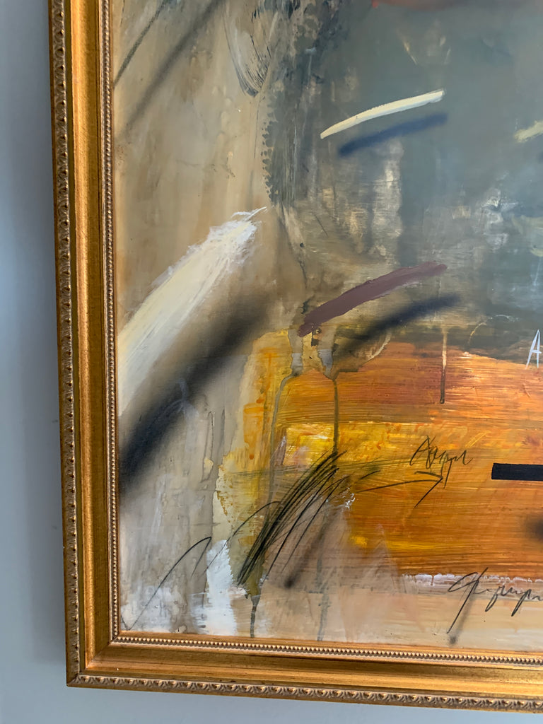 The Jørgen Waring oil on board mixed abstract painting from 1983 is a large original artwork created on cardboard. Known for his abstract style, Waring's artwork captures a theme of art through a unique production technique. This unique piece showcases Waring's artistic vision and creative use of mixed materials to create a dynamic and visually striking painting.