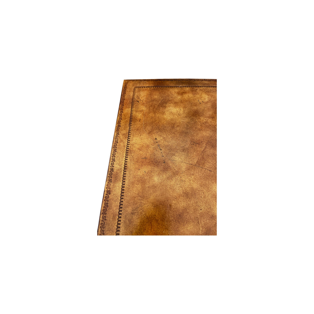 This Tommy Bahama-style British Colonial Bamboo and Rattan Desk is a stylish and unique antique piece, perfect for any home or office. Made with a combination of rattan and bamboo, and featuring leather insets, this desk boasts a free-standing design with multiple drawers for added functionality. With its mixed brown color and elegant design, this desk adds a touch of sophistication to any space.