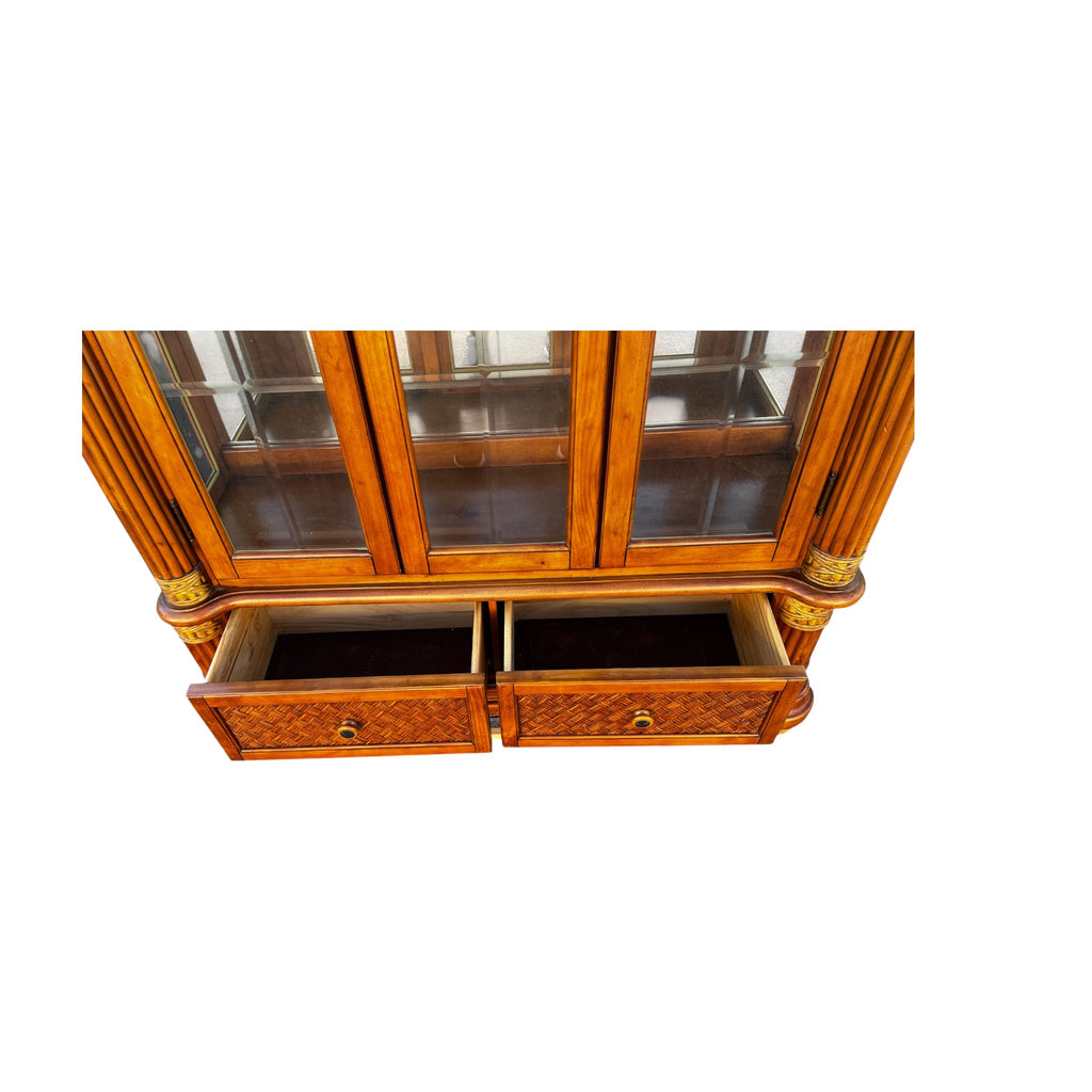 The Tommy Bahama Style Curio China Cabinet is a free-standing furniture piece that adds a touch of elegance to any home. Standing at 85 inches tall with a length of 17 inches and a width of 52 inches, this china cabinet provides ample storage space for your fine China items. With no additional parts required, this cabinet is easy to assemble and ready to use immediately. Perfect for displaying and storing your collection of glassware and decorative items, this cabinet is both functional and stylish.