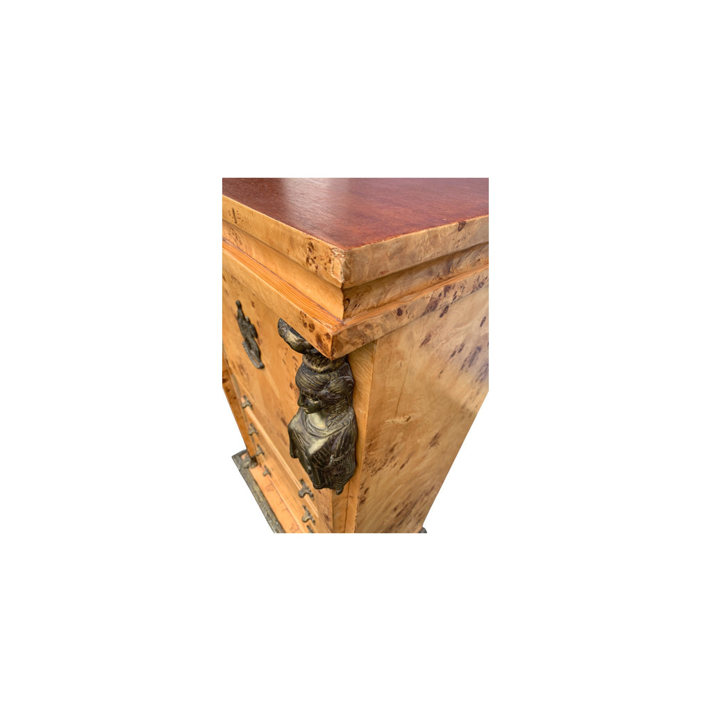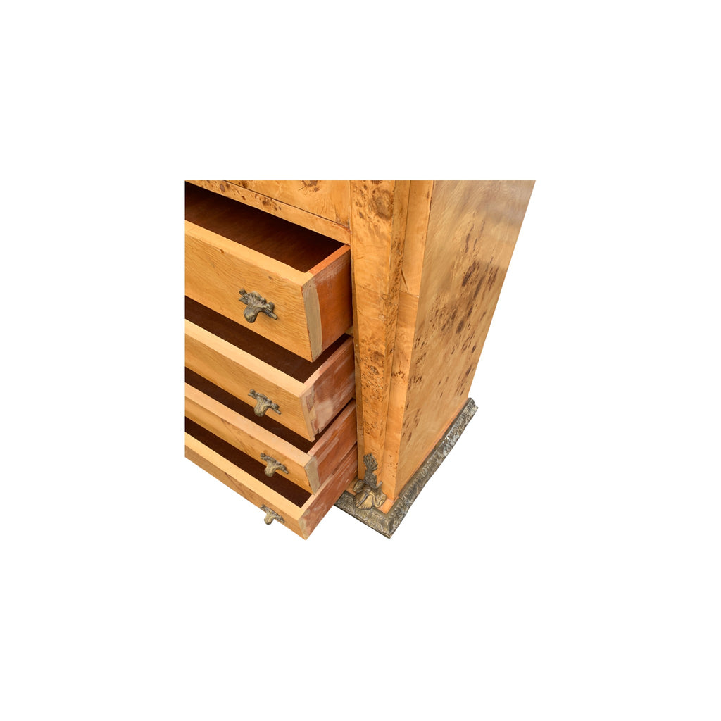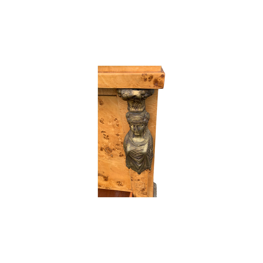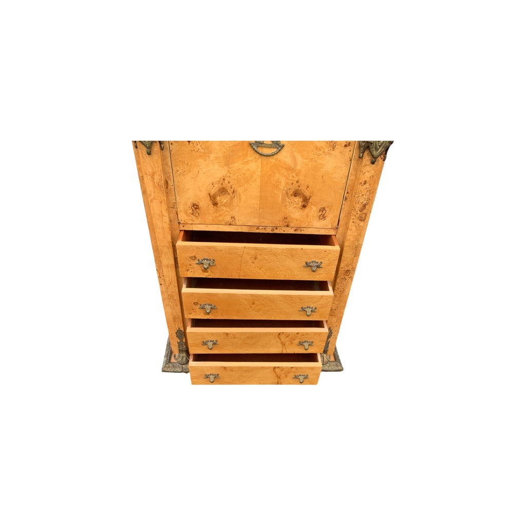 Vintage French Empire Burlwood Secretaire a Abattant desk with key