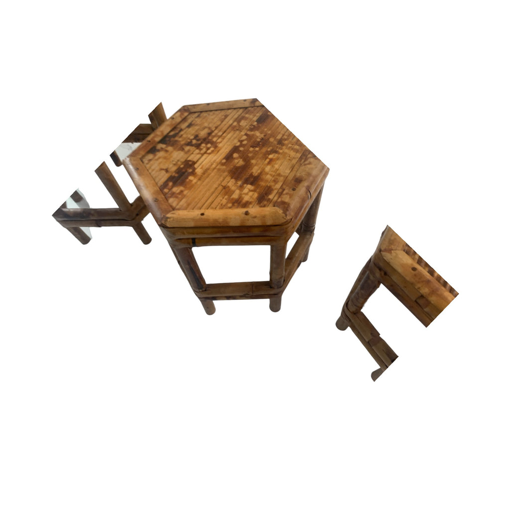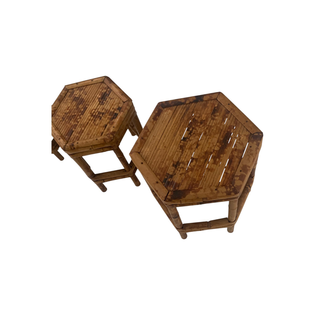 Vintage Tortoise Shell Burnt Bamboo Plant Stands Hexagon stackable lot of 3