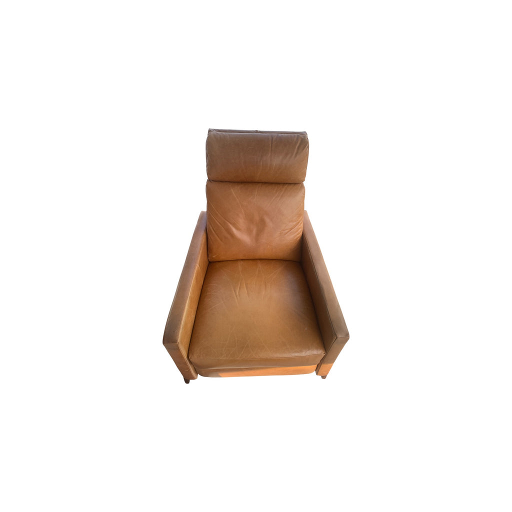 West Elm Spencer Wood-framed Leather recliner MCM style