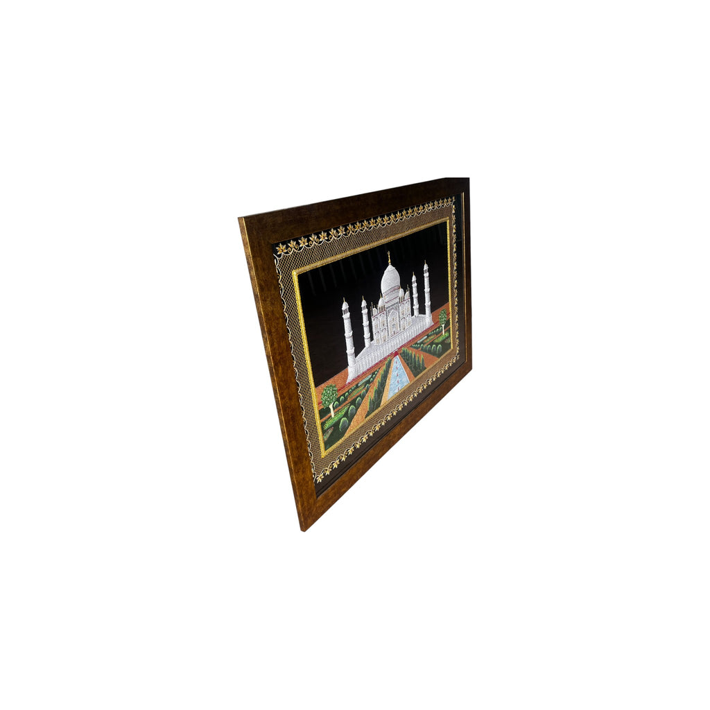 Zardozi Kashmir Taj Mahal Gold Carved Wall Panel w/ Precious Embroidery Thread